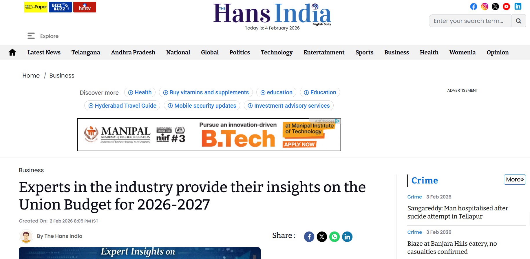Link: Experts in the industry provide their insights on the Union Budget for 2026-2027