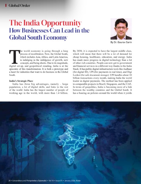 The world economy is going through a long process of recalibration. Now, the Global South, which includes Asia, Africa, and Latin America, is indulging in the indulgence of growth, new concepts, and being elastic. Due to its magnitude, digital set-up, and geopolitical standing, India is at the epicentre of this transformation. It is both a prototype and a heart for industries that want to do business in the Global South.